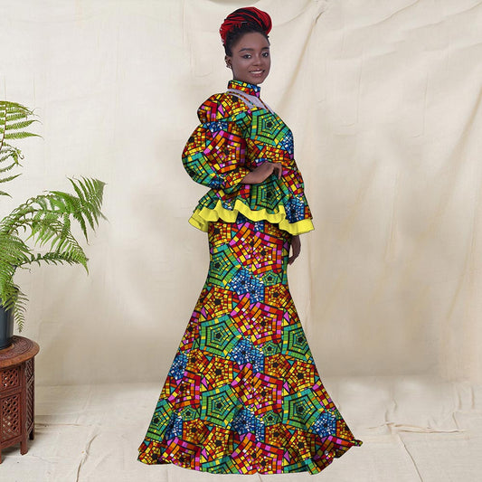 2 Pieces Set Women Skirt and Top Set African Clothes for Women Print Clothing Ankara Blouse and Split Skirts Suits Set WY8456